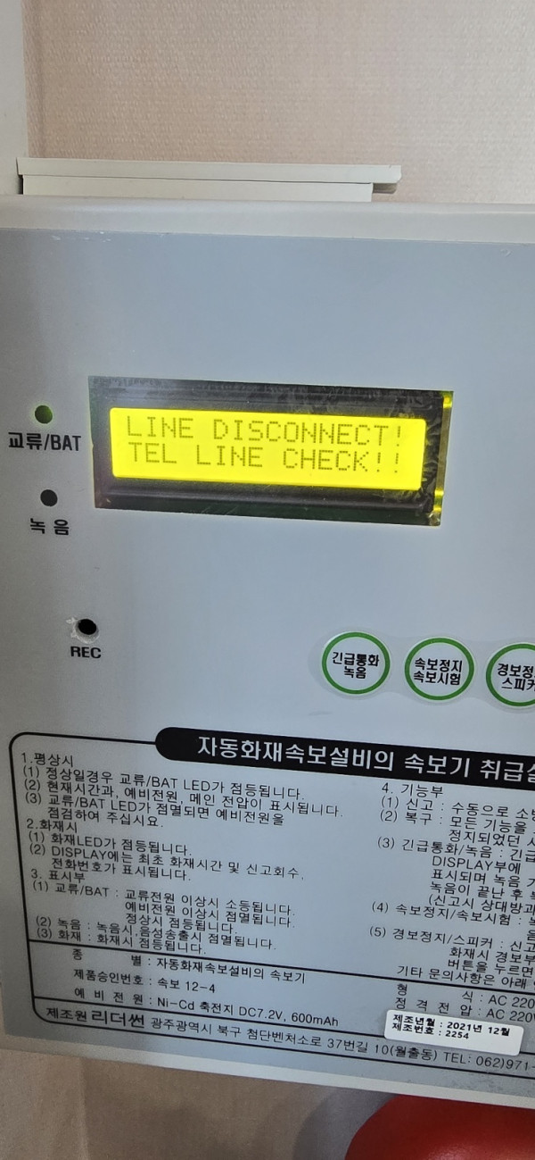 2일전 소방서에서 점검을 나왔는데 속보기 연결문제가 있다고 말했어요.